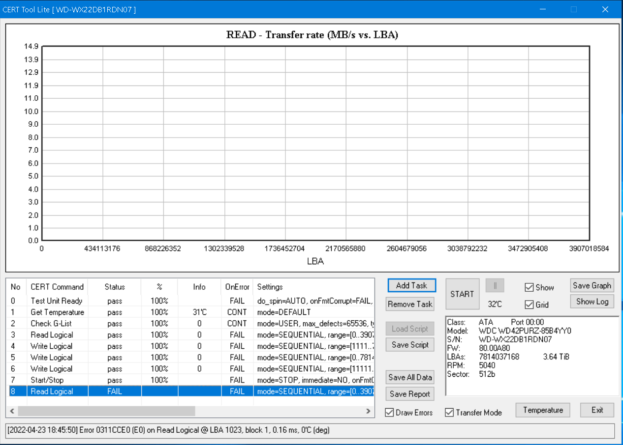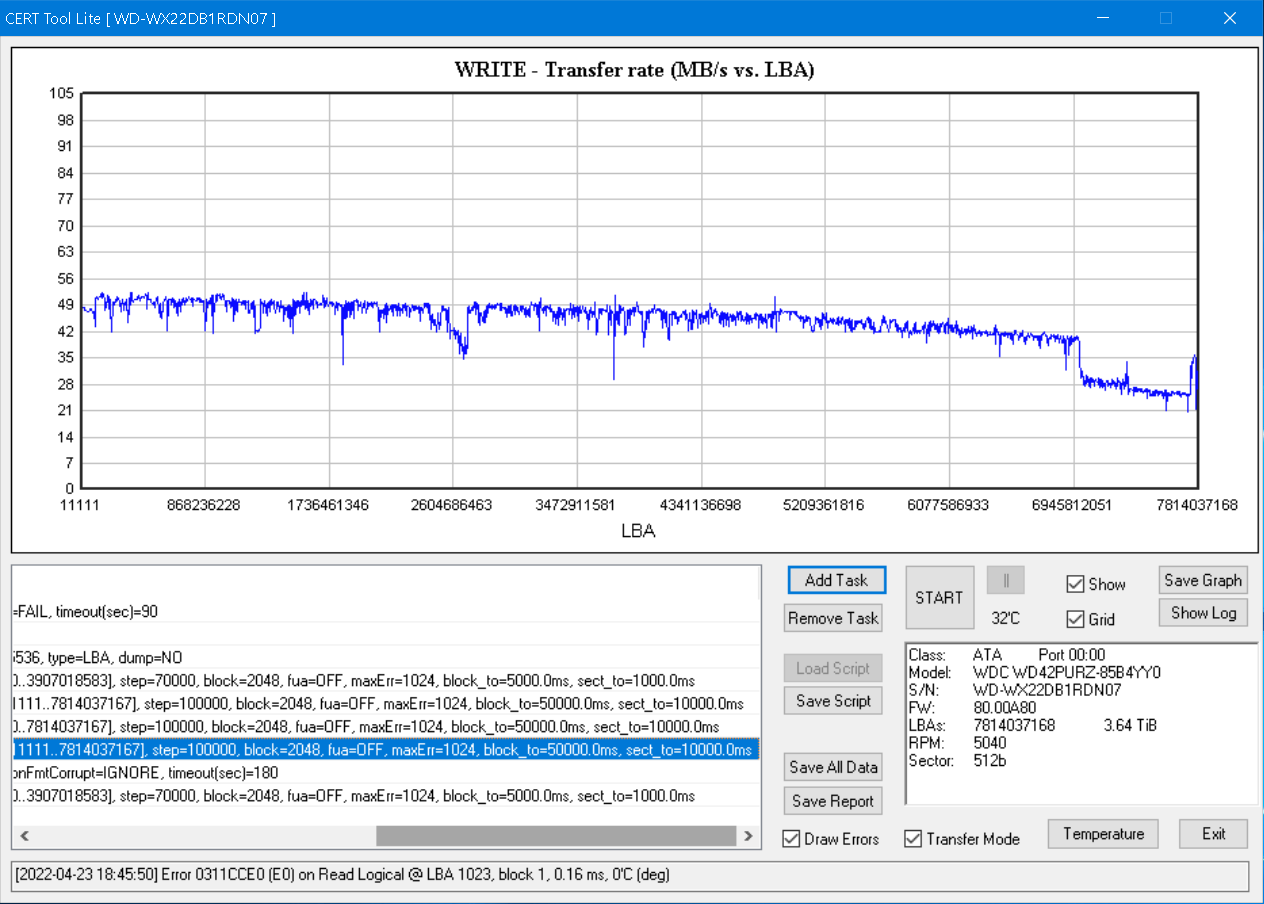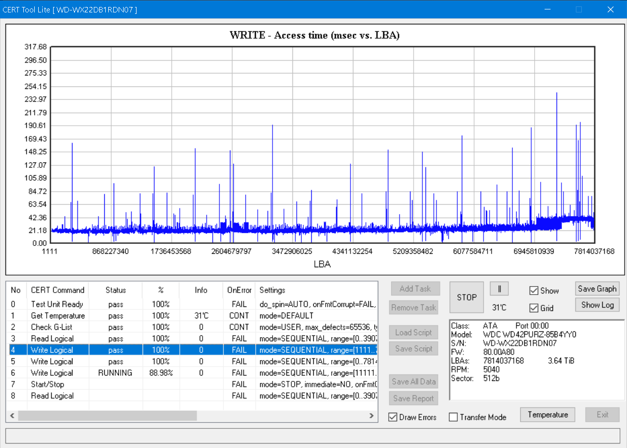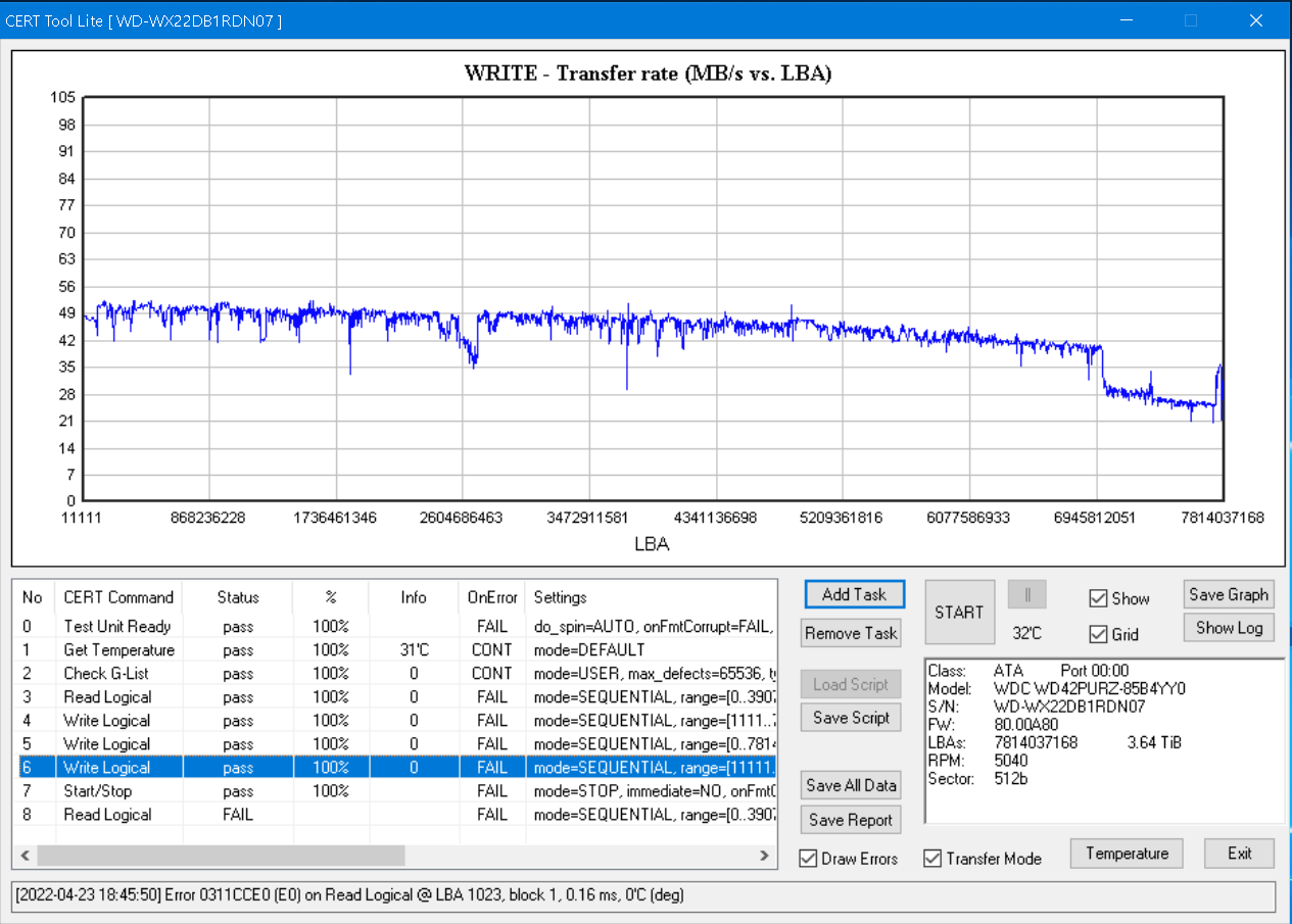 [2021-04-26 23:32:53] Slow run on Write Logical @ LBA 119636480, block 1 -> 155.08 ms