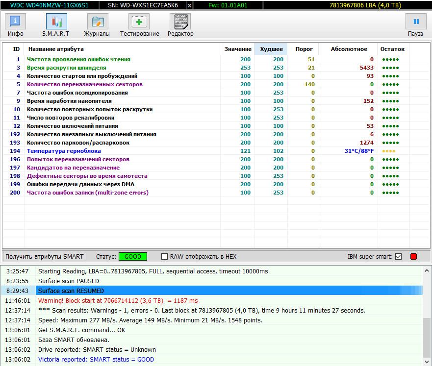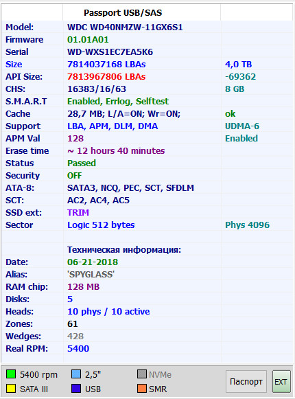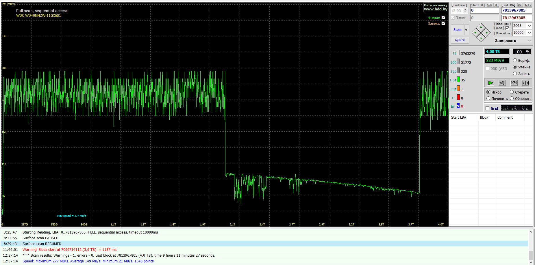 Есть внешний диск WD Elements 25A1. Решил проверить его Victoria. Получил непонятный мне график (во вложении).