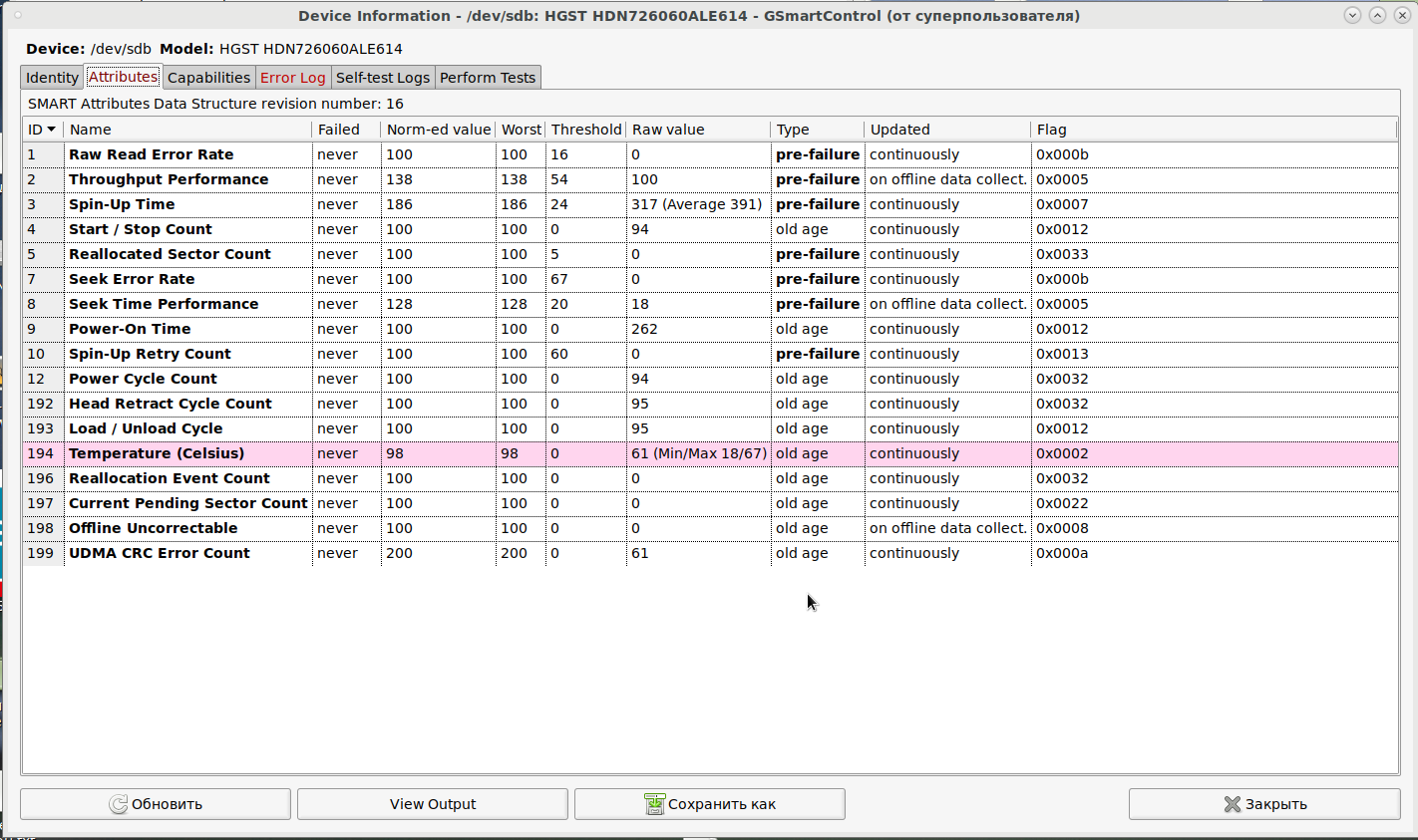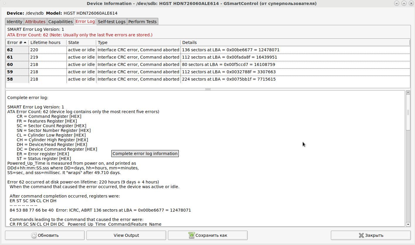 30 минут это всё продолжалось и я опасаясь перегрева (диск был без охлаждения в салазках) корректно выключил ОС и компьютер.
