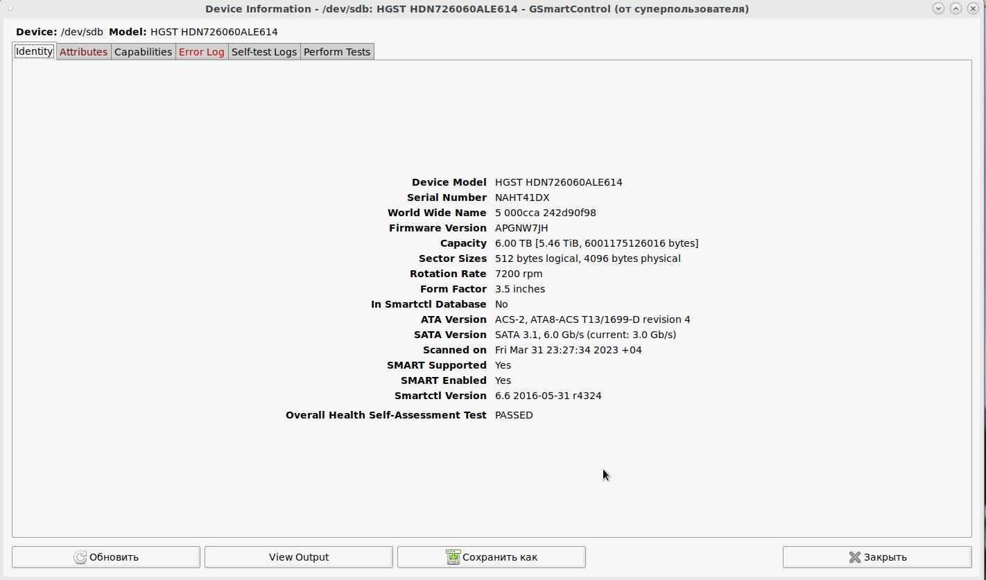 [ 2.797989] ata6.00: ATA-9: HGST HDN726060ALE614, APGNW7JH, max UDMA/133