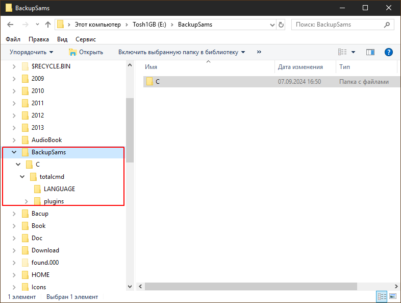 Т.е. только C/totalcmd/. Нет ни D ни других подкаталогов в С.