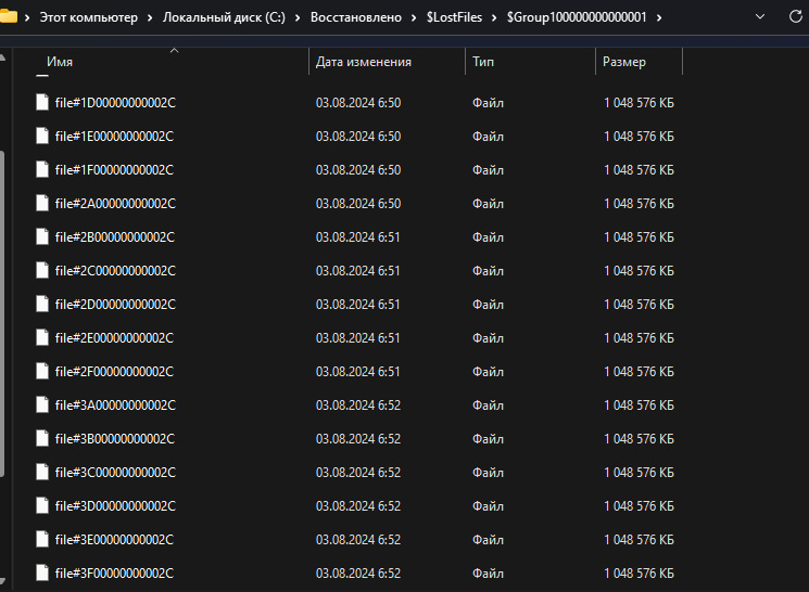 полтора года назад переходя на новый пк переставил hdd диск на новый пк и мастер по компам по ошибке отформатировал диск с важными видео и фото. пытался восстановить через r.saver и r-studio, по размеру файло вроде всё сходилось, однако восстановись какие-то непонятные файлы с неизвестными мне названиями, также были файлы формата vp6, которые весят по 50гб, которые нельзя открыть и которые не являются фото либо видео, сейчас решил снова попытаться и та же проблема, что может быть не так?