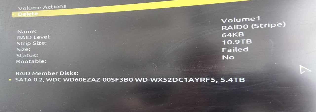 Есть 2 диска WD BLUE по 6 Тб, они работали в режиме Raid 0 (был создан на материнке Gigabyte, через EZ Raid, во вложении).